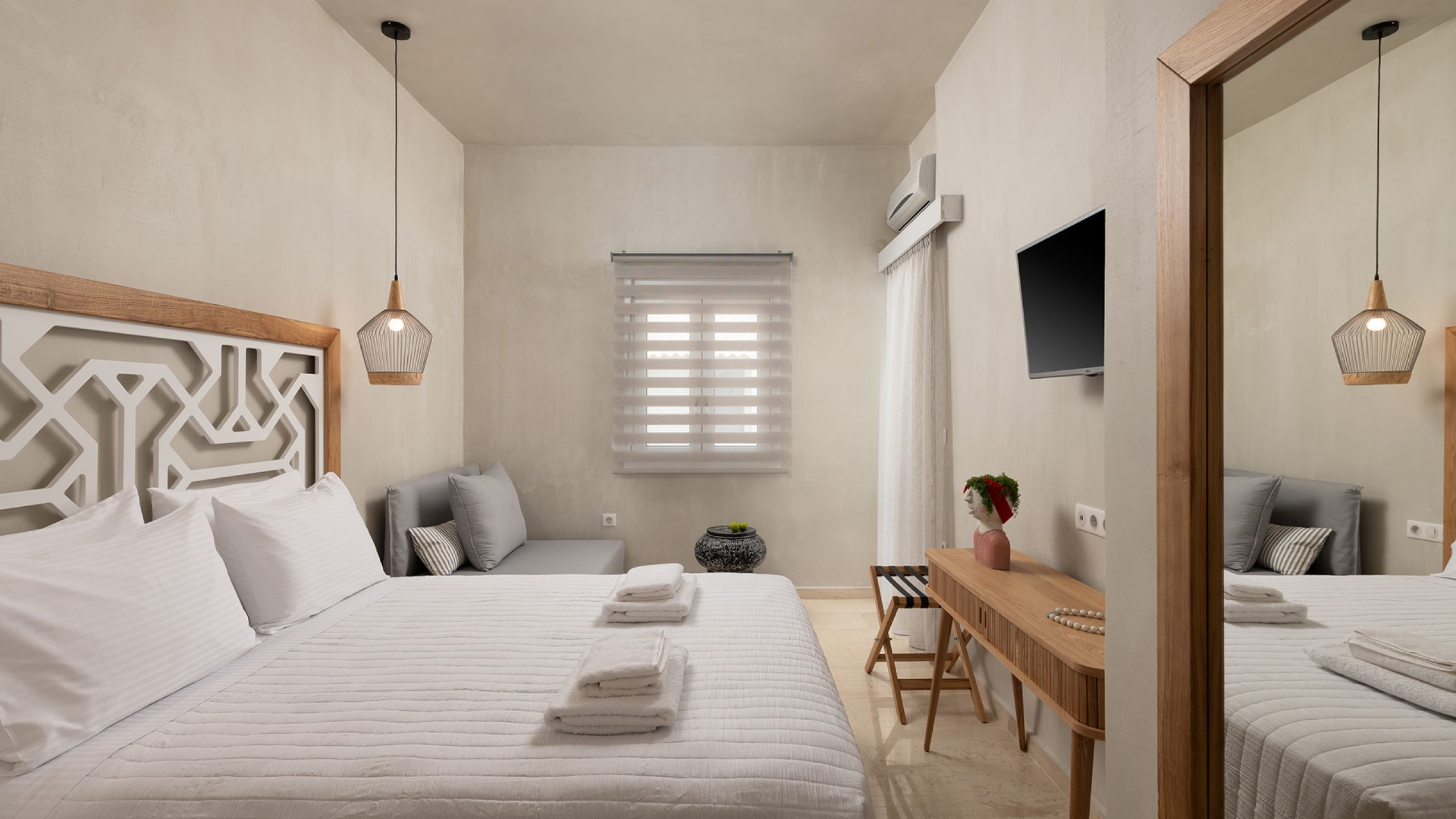 The Apollo Plakias Hotel in Crete is the ideal choice for your beach vacation. With deluxe studios and deluxe rooms with self-catering facilities, free WiFi and private parking, it offers all the comfort you need. As of the 2023-2024 season, the property has been completely renovated, with a complete modernization of the deluxe category rooms, with a new breakfast room and a modernization of all outdoor areas of the pool and gardens.